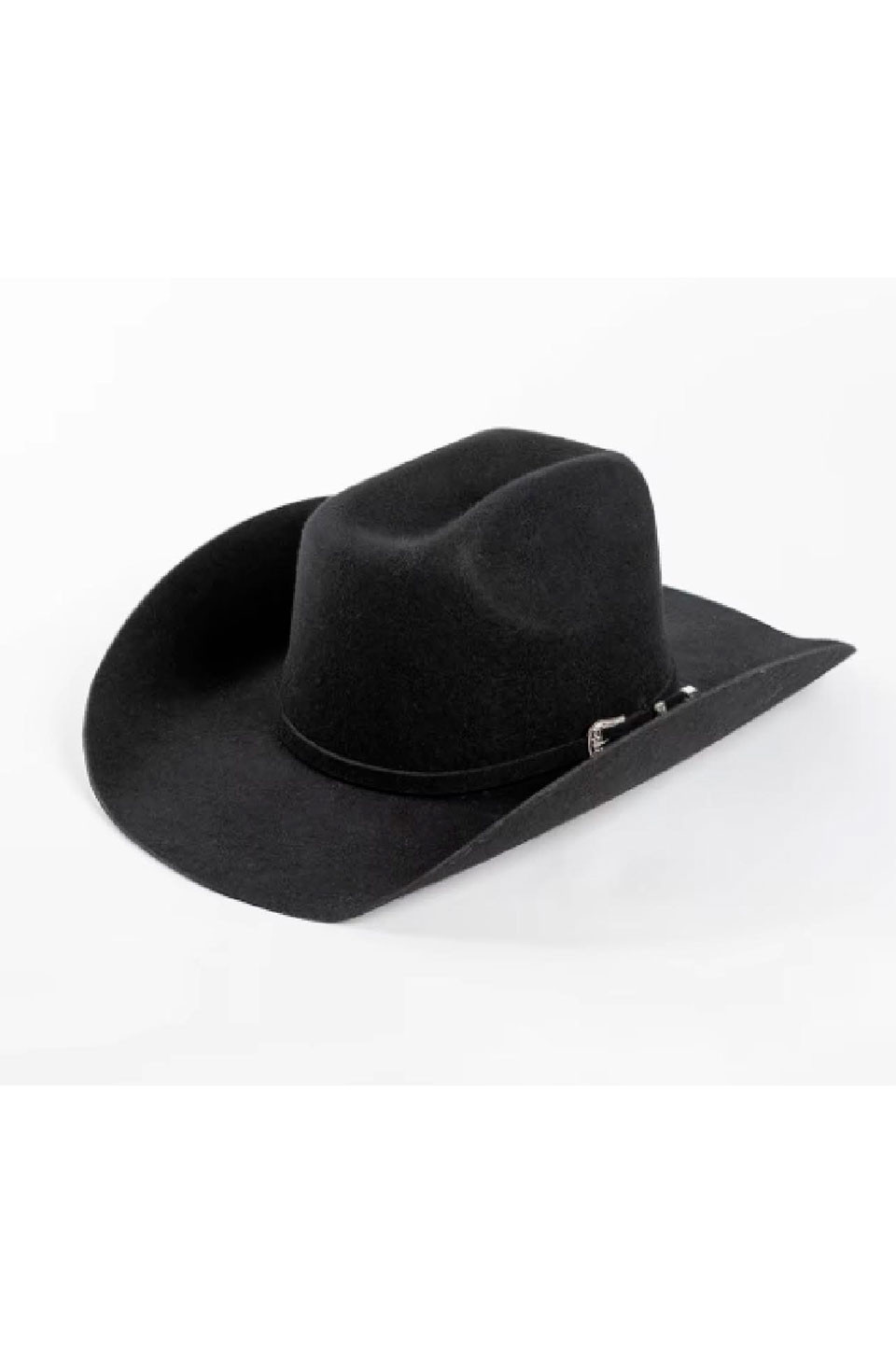 The perfect accessory to elevate any outfit. This black felt wide-brim hat, crafted from high-quality materials, adds a touch of sophistication and bohemian charm. Its structured design and slim belt with metallic buckle create a perfect balance between classic style and modern attitude.