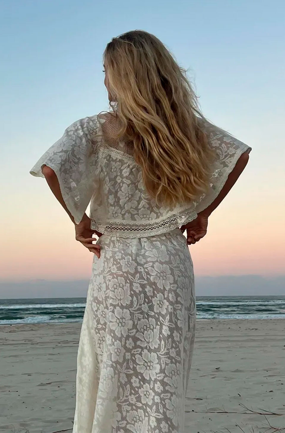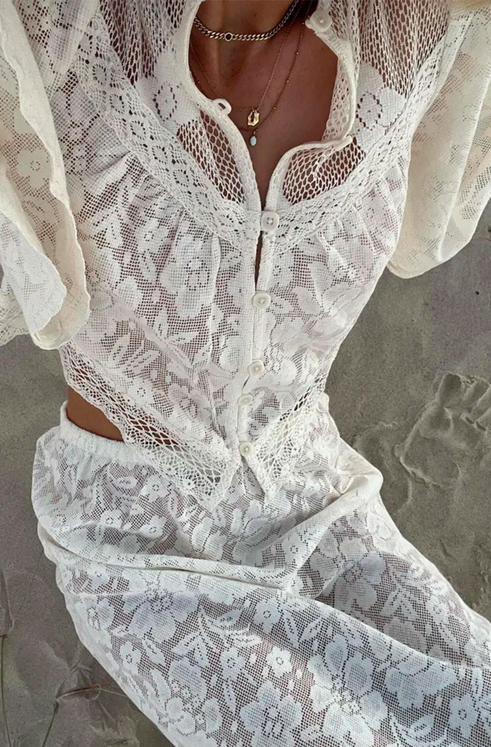 Blusa boho de encaje marfil con aire mediterráneo