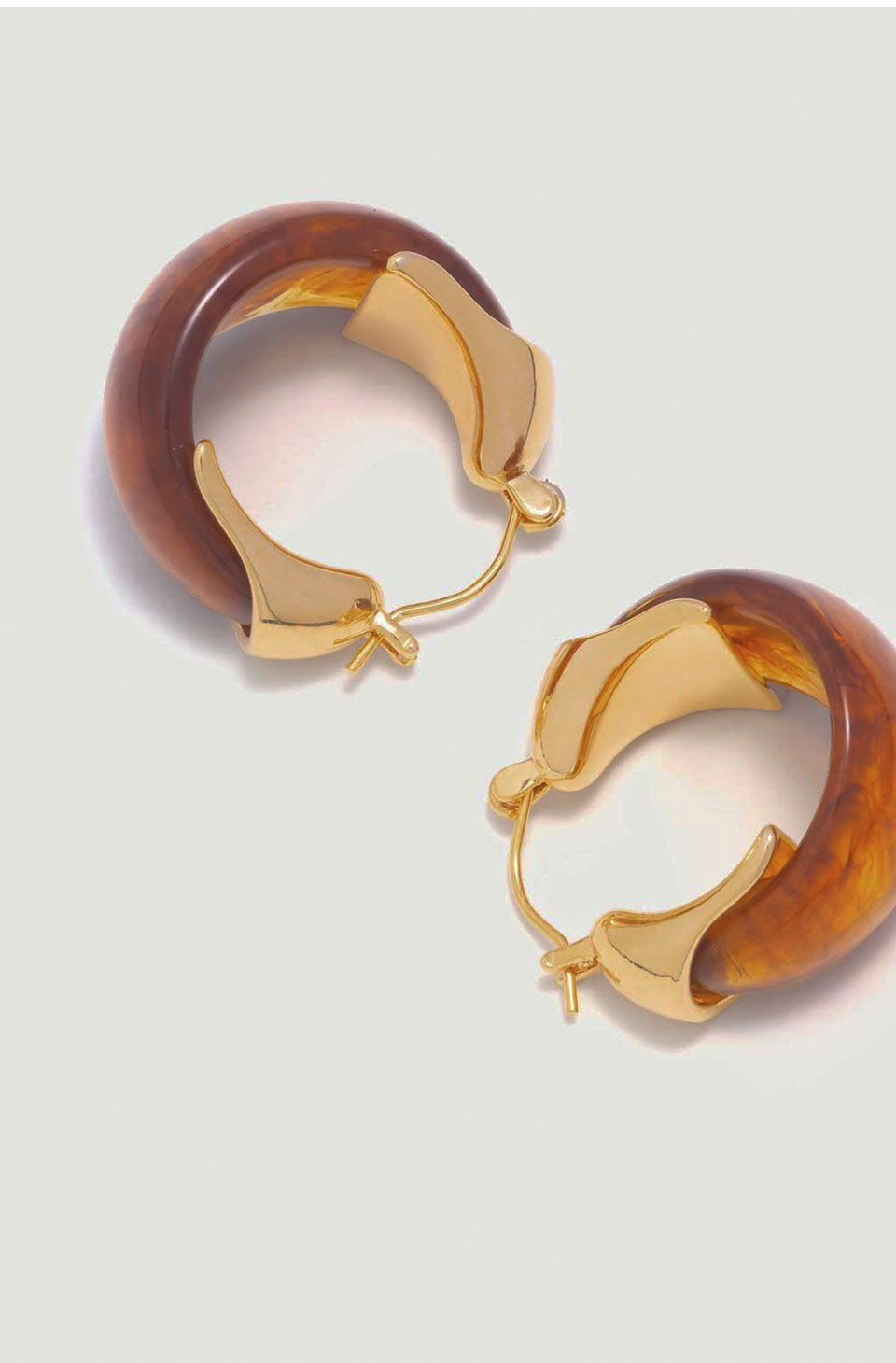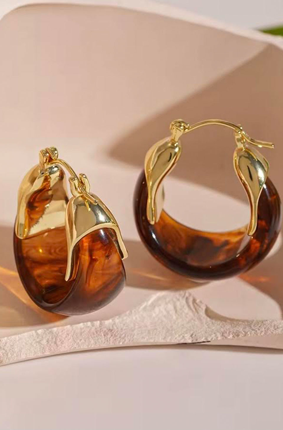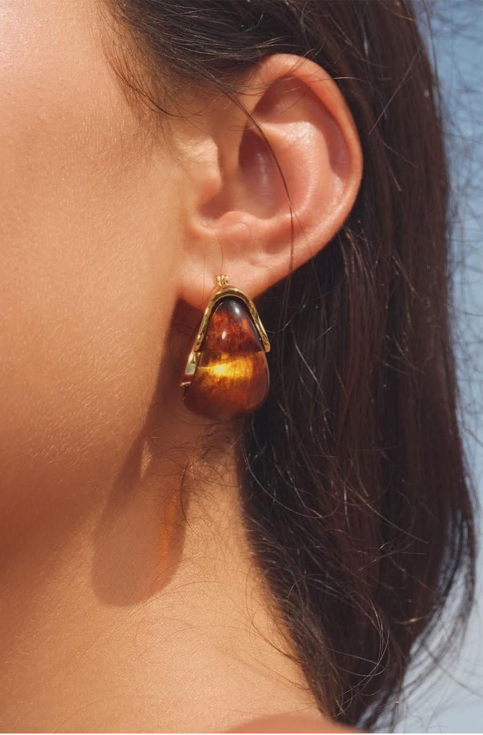 Pendientes aro ámbar y oro — diseño escultural y sofisticado